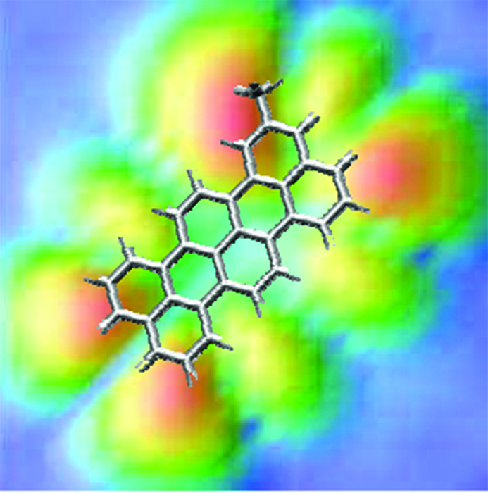| Description: | ESQC-STM image calculation of a single methylterrylene kartal escort molecule adsorbed on two monolayers of NaCl(100) deposited on Cu(111) surface. The thin insulating film allows the decoupling of the electronic structure of the molecule from the metallic substrate. The structure of molecular orbitals can then be well resolved. |